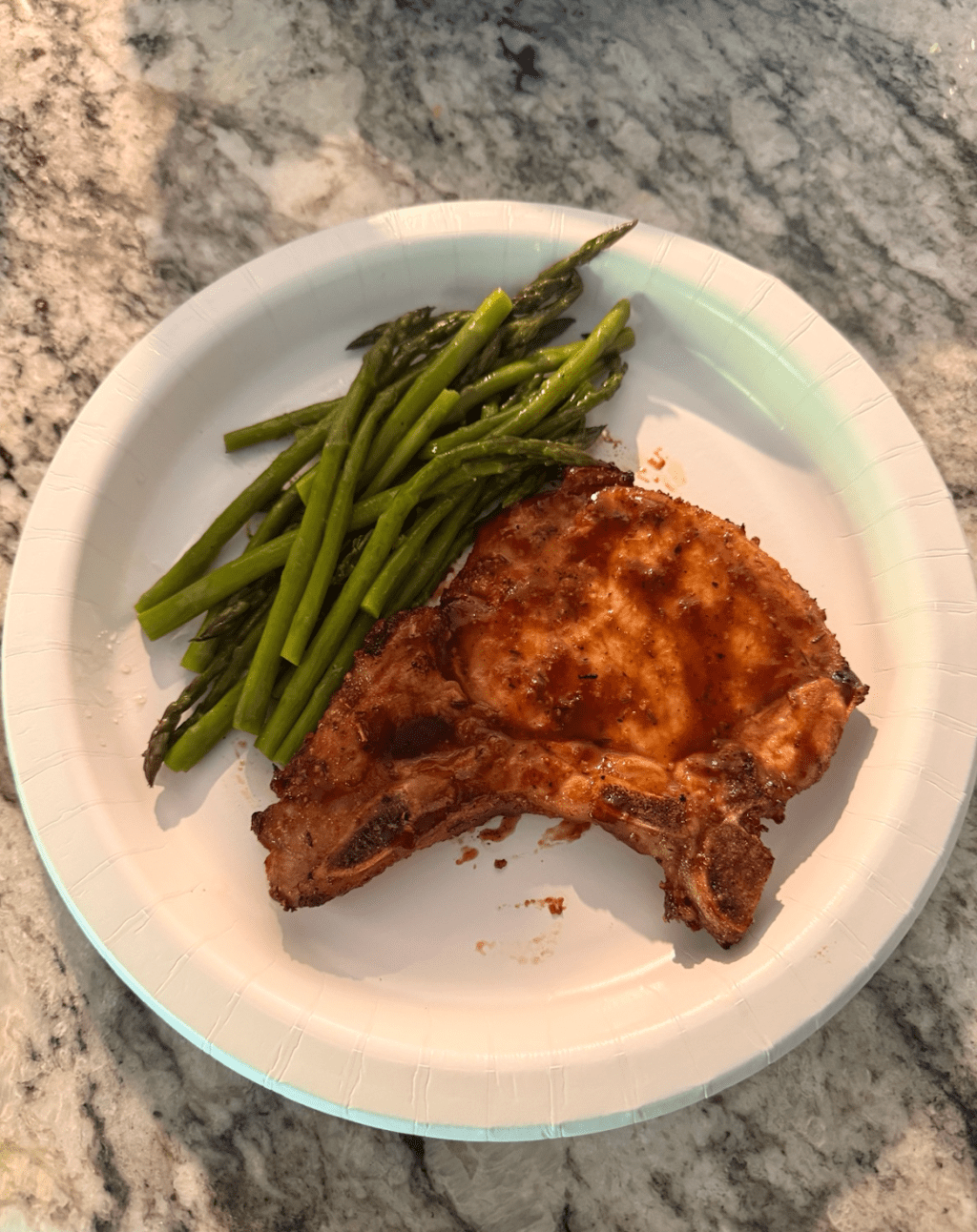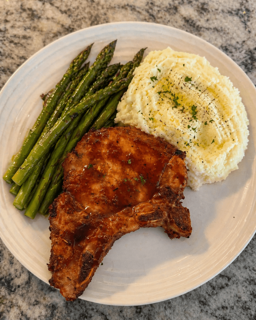 They were juicy, flavorful, slightly sweet, smoky, and paired perfectly with steamed asparagus and garlic cheese mashed potatoes. My husband loved them too, which always makes a recipe worth repeating.